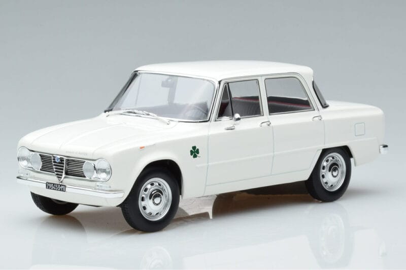 The Alfa Romeo Giulia Ti Super Norev 1:18 is crafted from Métal Moulé. Die-cast zinc alloy body with detailed plastic parts, rubber tires, and high-quality paint finish. Die-cast models are known for their weight, durability, and realistic feel.