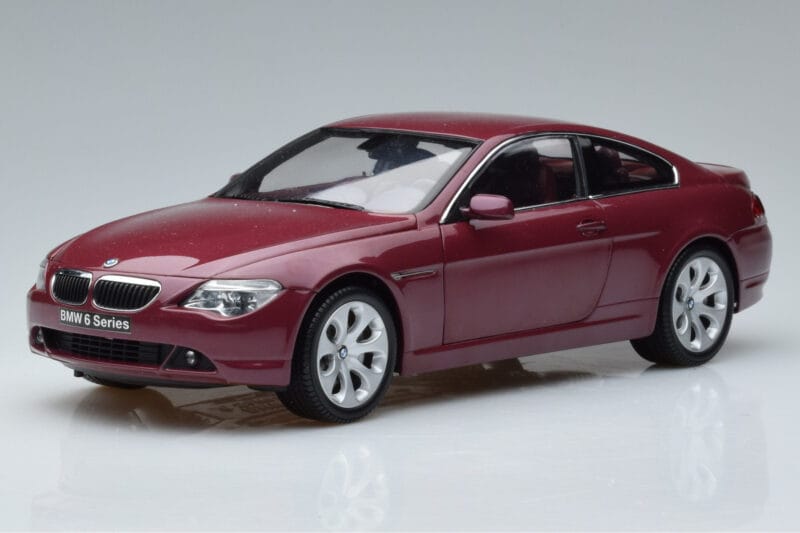 The BMW 645Ci E63 Rouge Foncé Kyosho 1:18 is crafted from Métal Moulé. Die-cast zinc alloy body with detailed plastic parts, rubber tires, and high-quality paint finish. Die-cast models are known for their weight, durability, and realistic feel.