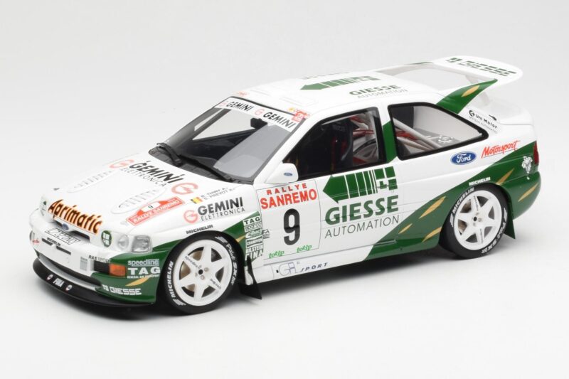 The Ford Escort RS Cosworth B. Thiry / S. Prevot Rally San Remo 1994 Otto 1:18 is crafted from Résine. High-quality resin with hand-painted details and limited production runs. Resin models offer exceptional detail and are prized by serious collectors for their craftsmanship.