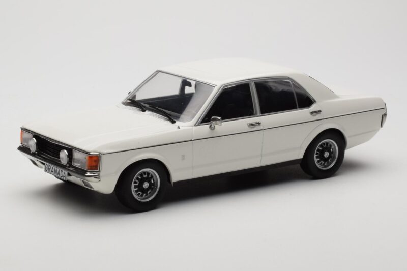 A 1:18 scale model measures approximately 25-28 cm (approximately 10-11 inches). The Ford Granada Mk1 Blanc MCG 1:18 is perfect for display in a glass cabinet or on a shelf.