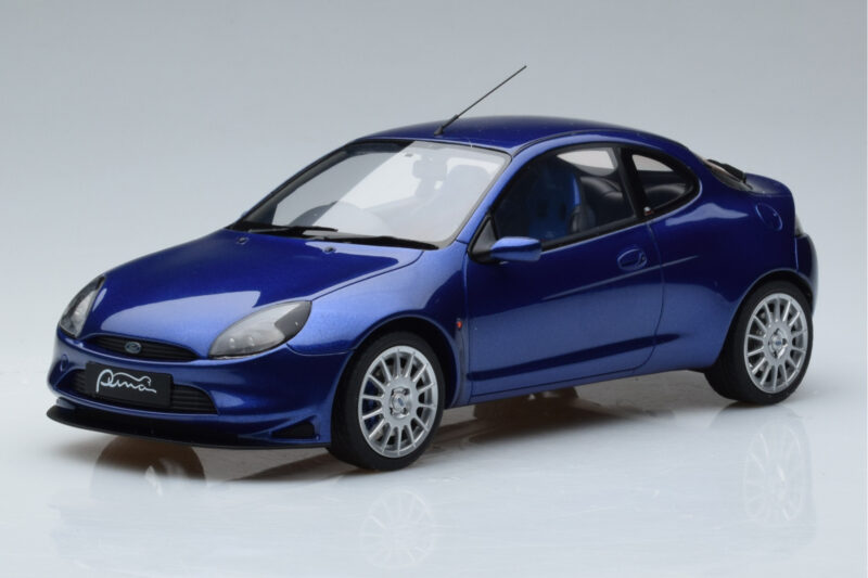 A 1:18 scale model measures approximately 25-28 cm (approximately 10-11 inches). The Ford Puma Bleu Otto 1:18 is perfect for display in a glass cabinet or on a shelf.