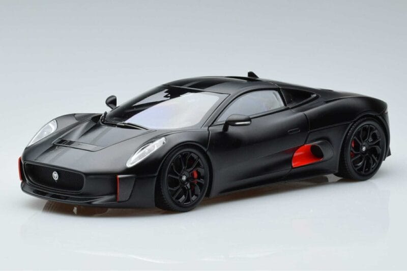The Jaguar C-X75 Noir Almost Real 1:18 is crafted from Métal Moulé. Die-cast zinc alloy body with detailed plastic parts, rubber tires, and high-quality paint finish. Die-cast models are known for their weight, durability, and realistic feel.