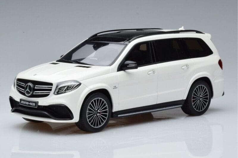 The Mercedes AMG GLS63 X166 Blanc GT Spirit 1:18 is crafted from Résine. High-quality resin with hand-painted details and limited production runs. Resin models offer exceptional detail and are prized by serious collectors for their craftsmanship.