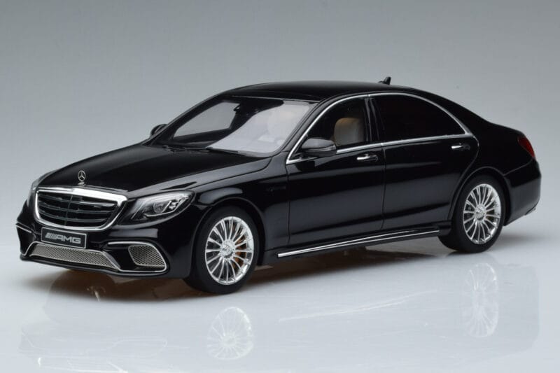 A 1:18 scale model measures approximately 25-28 cm (approximately 10-11 inches). The Mercedes AMG S65 W222 Noir GT Spirit 1:18 is perfect for display in a glass cabinet or on a shelf.