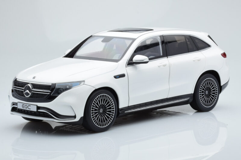 A 1:18 scale model measures approximately 25-28 cm (approximately 10-11 inches). The Mercedes EQC 400 Diamond Blanc NZG 1:18 is perfect for display in a glass cabinet or on a shelf.
