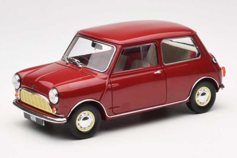 The Morris Mini Minor Rouge Kyosho 1:18 is crafted from Métal Moulé. Die-cast zinc alloy body with detailed plastic parts, rubber tires, and high-quality paint finish. Die-cast models are known for their weight, durability, and realistic feel.