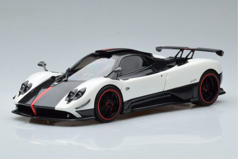 The Pagani Zonda Cinque Blanc Benny Almost Real 1:18 is crafted from Métal Moulé. Die-cast zinc alloy body with detailed plastic parts, rubber tires, and high-quality paint finish. Die-cast models are known for their weight, durability, and realistic feel.