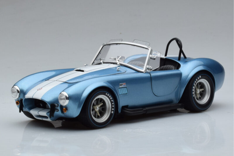 The Shelby Cobra 427 S/C Bleu Clair Kyosho 1:18 is crafted from Métal Moulé. Die-cast zinc alloy body with detailed plastic parts, rubber tires, and high-quality paint finish. Die-cast models are known for their weight, durability, and realistic feel.