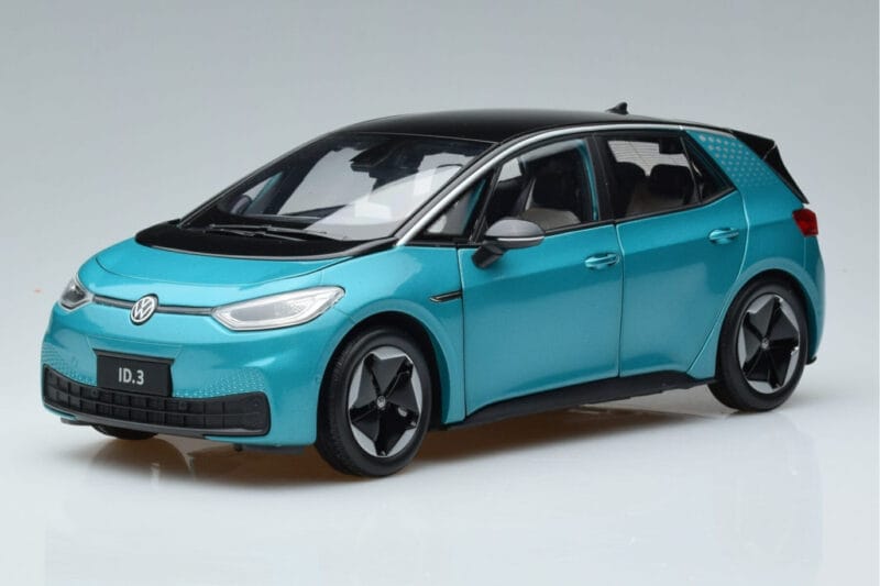 The Volkswagen ID.3 Vert FAW 1:18 is crafted from Métal Moulé. Die-cast zinc alloy body with detailed plastic parts, rubber tires, and high-quality paint finish. Die-cast models are known for their weight, durability, and realistic feel.